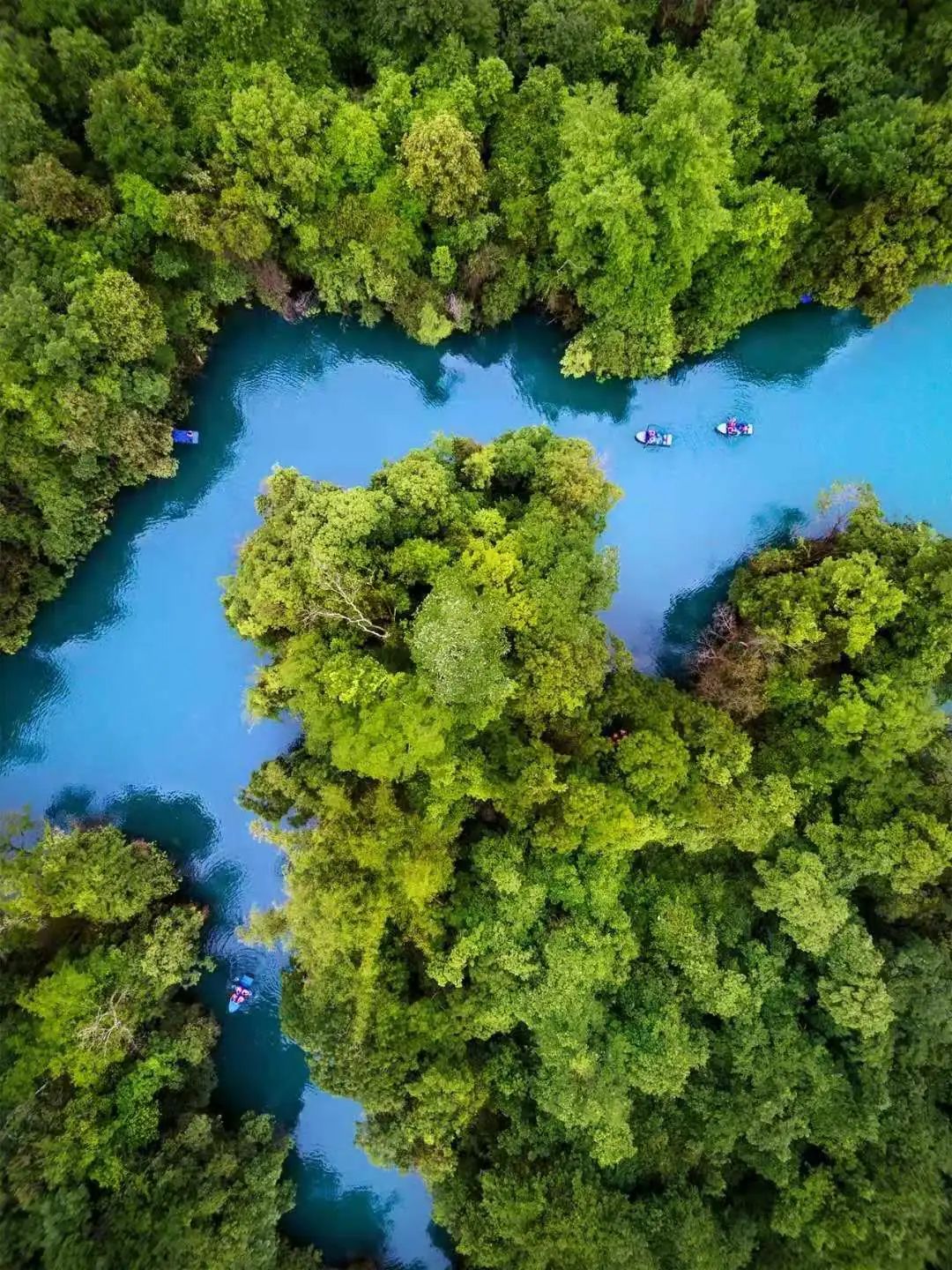 峡谷之间,泛舟于仙水,慢慢悠悠,