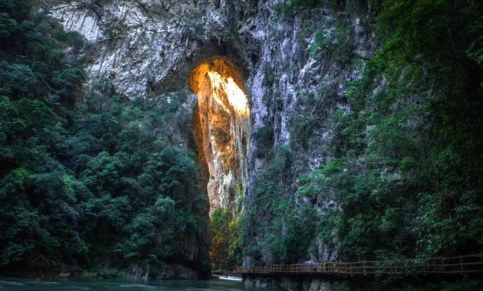 景区以原始森林、峡谷、伏流、地下湖为主体,形成洞中有瀑,瀑中有湖,湖上有天窗的景色;以及高百米、宽数十米跨江而过的天生桥,被专家誉名为“大自然神力所塑造的东方凯旋门”,观之令人肃然起敬,为大自然巧夺天工之神力所折服。