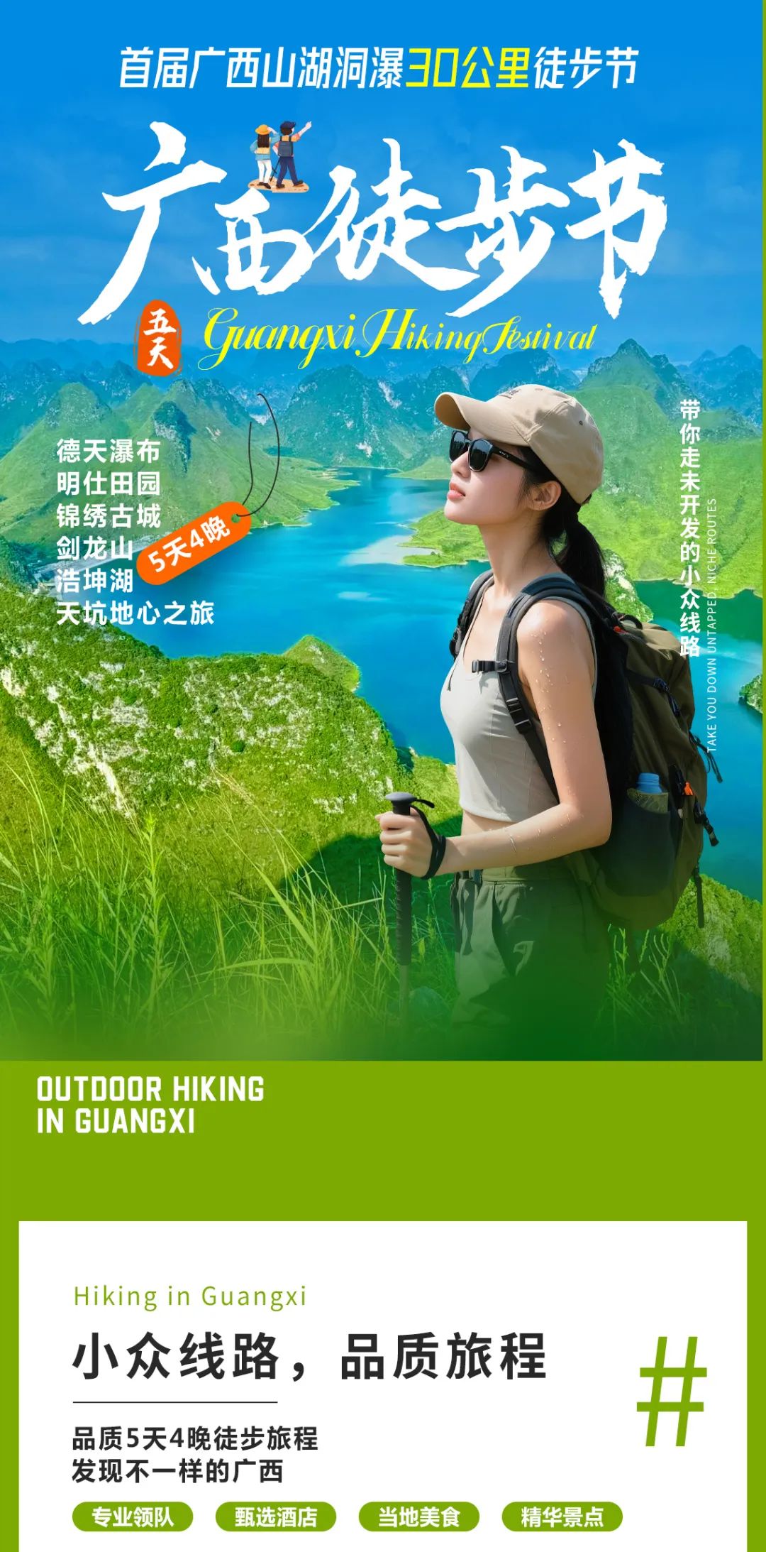 08:00早餐后出发,坐车1小时到达浩坤湖徒步起点,今天徒步穿越网红浩坤湖,这里也是广西山水经典的徒步景色,中午也是路餐干粮。