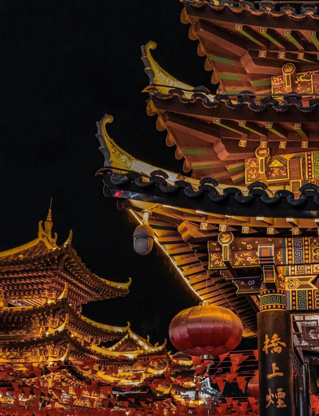 夜幕降临,华灯初上,才是锦绣古镇最美的时候,炫彩灯光将古镇点缀得流光溢彩,色彩斑斓,时光仿佛在光影中错乱了。