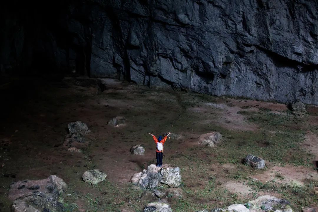 08:00徒步地心之旅。开启5小时的熊家两洞连穿,大家带上头灯,线路很成熟,地心之旅徒步大会精华段就这里。先进行一小段的登山,这个季节,最合适早起登山,今天的午餐是路餐,只能是在洞里吃,带上温水,还有干粮,一起探索神奇的天坑溶洞世界吧
