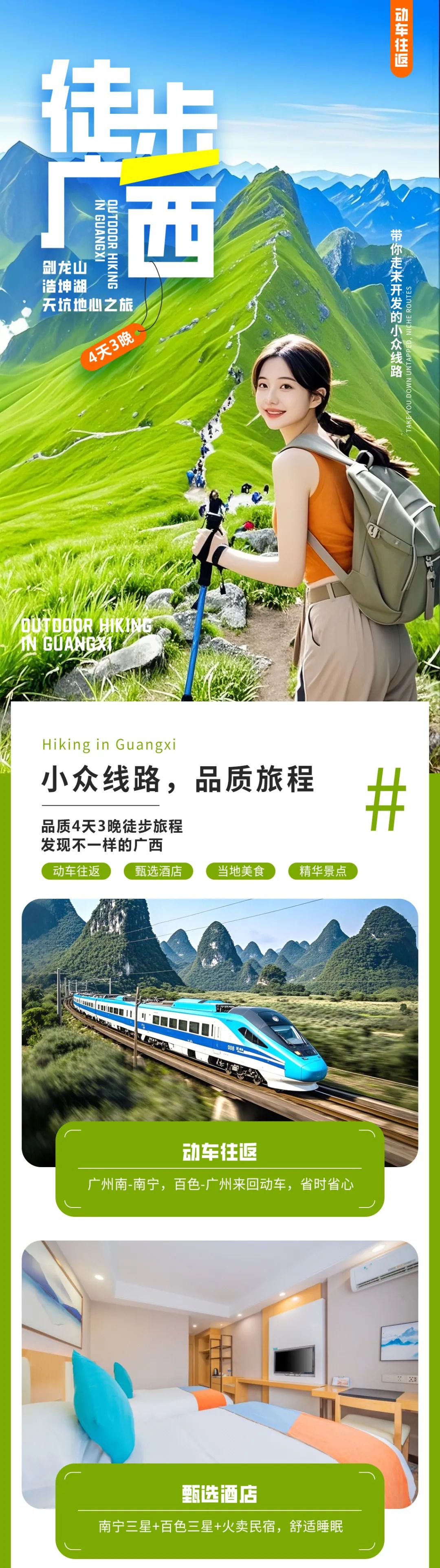 19:00 晚上坐动车出发(我们安排19点左右的动车出发,大家按自己的时间也可以提前或延后班次出发,提前和延后班次自己到南宁坐地铁到酒店集合,常规19点左右班次有领队接站一起酒店)