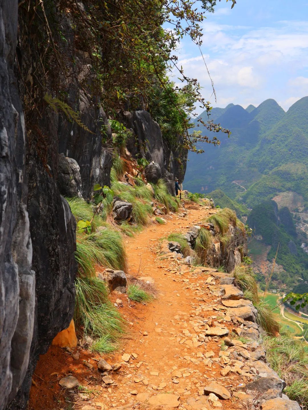 先进行一小段的登山,这个季节,最合适早起登山,今天的午餐是路餐,只能是在洞里吃,带上温水,还有干粮,一起探索神奇的天坑溶洞世界吧