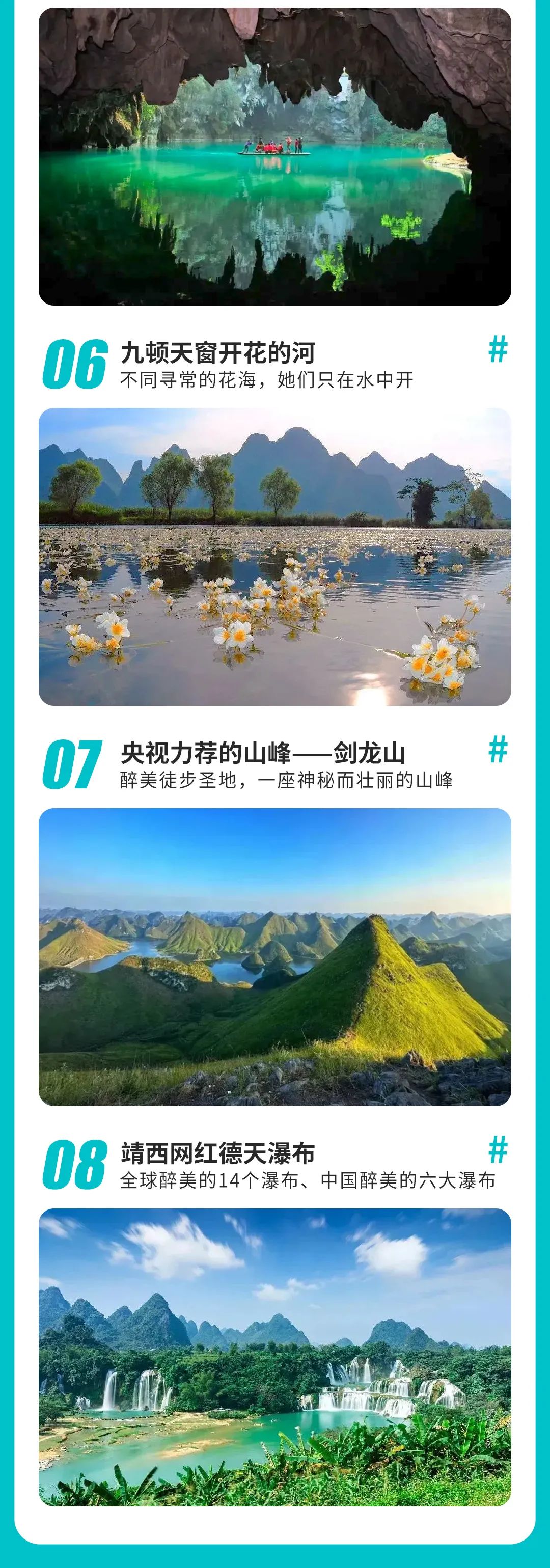 ·活动地点:广西德天瀑布、网红龙剑山、河池三门海、九顿天窗
