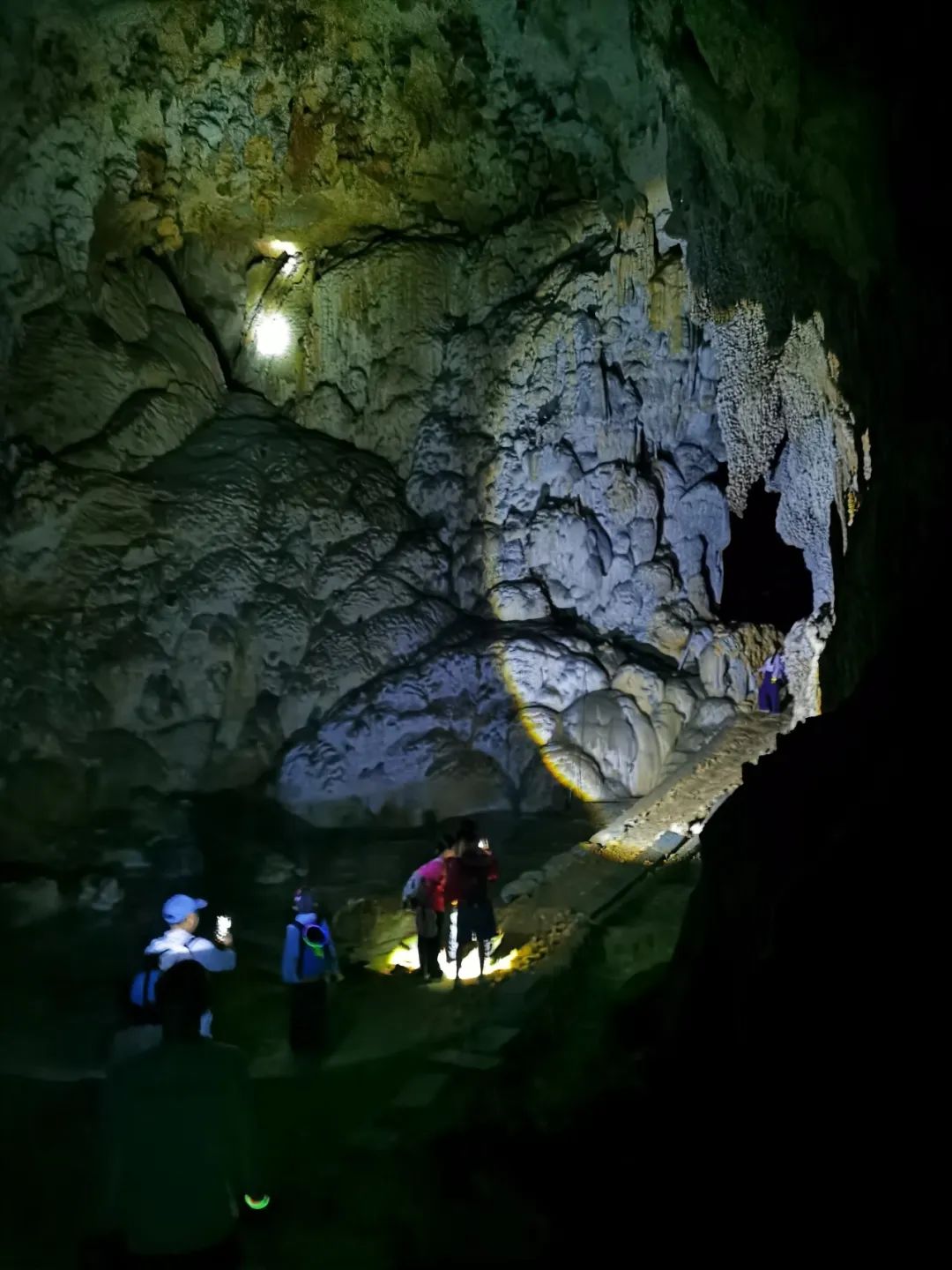 11:00 徒步地心之旅。开启5小时的熊家两洞连穿,大家带上头灯,线路很成熟,地心之旅徒步大会精华段就这里。先进行一小段的登山,这个季节,最合适早起登山,今天的午餐是路餐,只能是在洞里吃,带上温水,还有干粮,一起探索神奇的天坑溶洞世界吧