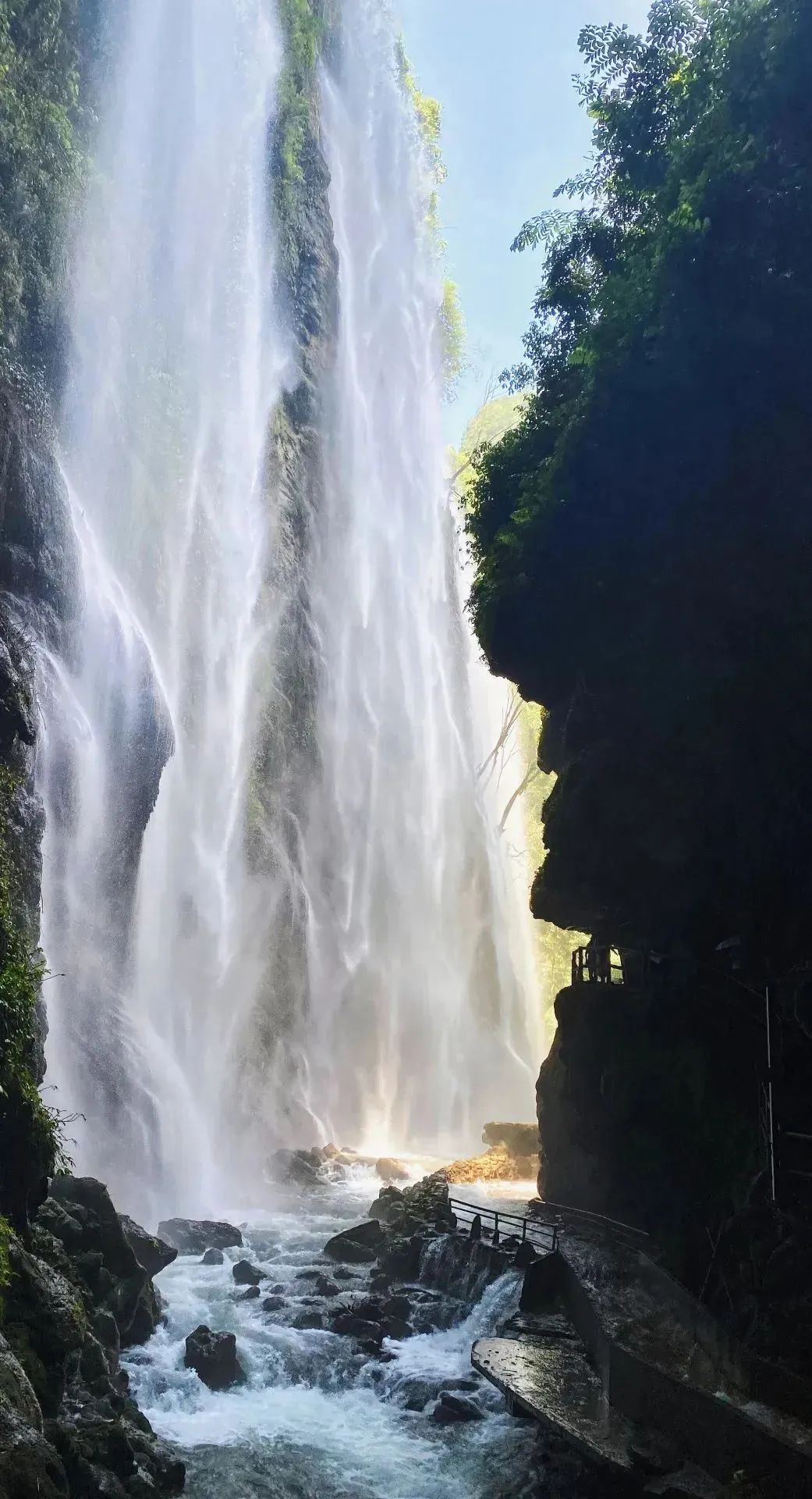 三个地下暗河溶洞及单级落差128米的古龙大瀑布和12个美如画卷的壮丽瀑布景观组成,全长7.8公里。有峡谷观光游(徒步)、地下河探秘漂、三峡二洞经典漂、三峡二洞自由漂、快乐激情漂等好玩项目。