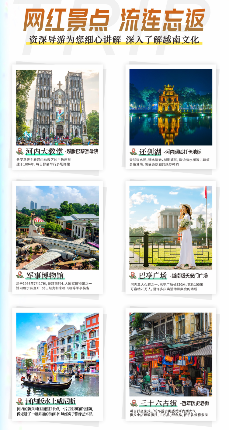 (6)越南时间比中国北京时间慢一小时;另行程里的时间仅供参考具体以当时游览时间为准;
