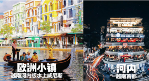 游览【欧洲小镇 Megagrandworld】---越南河内版水上威尼斯(停留参观约 30 分钟),是河内的新兴网红拍照打卡点,一片五彩斑斓的建筑,就像走进了一幅美丽的油画中!每座房子都像艺术品一样。彩色房子中又包裹着一条小河,小河上还有大帆船,小游船,给这个小镇又增添了些生动的色彩,有种身处电影里的高级感!