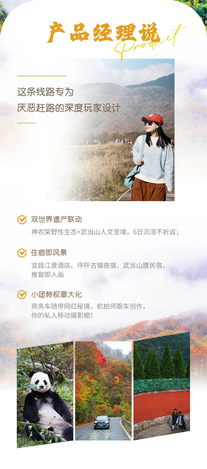 【集合地点】宜昌市区指定酒店,请报“秋醉神农”+姓名入住,酒店入住时间14:00后,提前抵达可将行李先寄存在酒店前台先出去游玩,贵重物品请随身携带,自由活动期间注意安全;