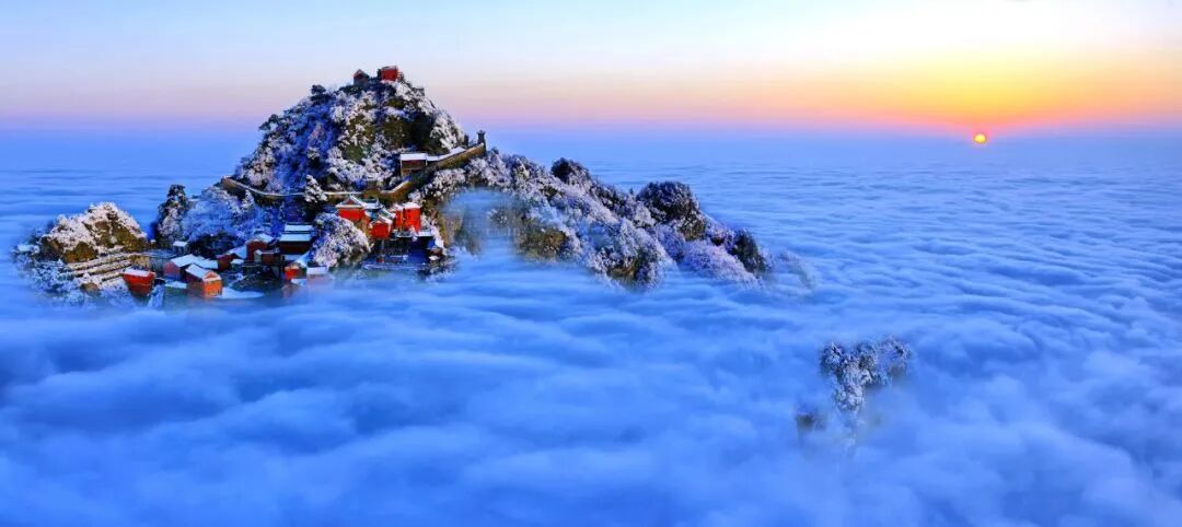 “紫岳琼台隐仙踪,元殿石雕溯道源”立天柱峰麓,观元代青石殿玄武圣像,传为真武大帝受封“北极玄天上帝”圣地,索道起点揽云海,遥望金顶耀苍穹