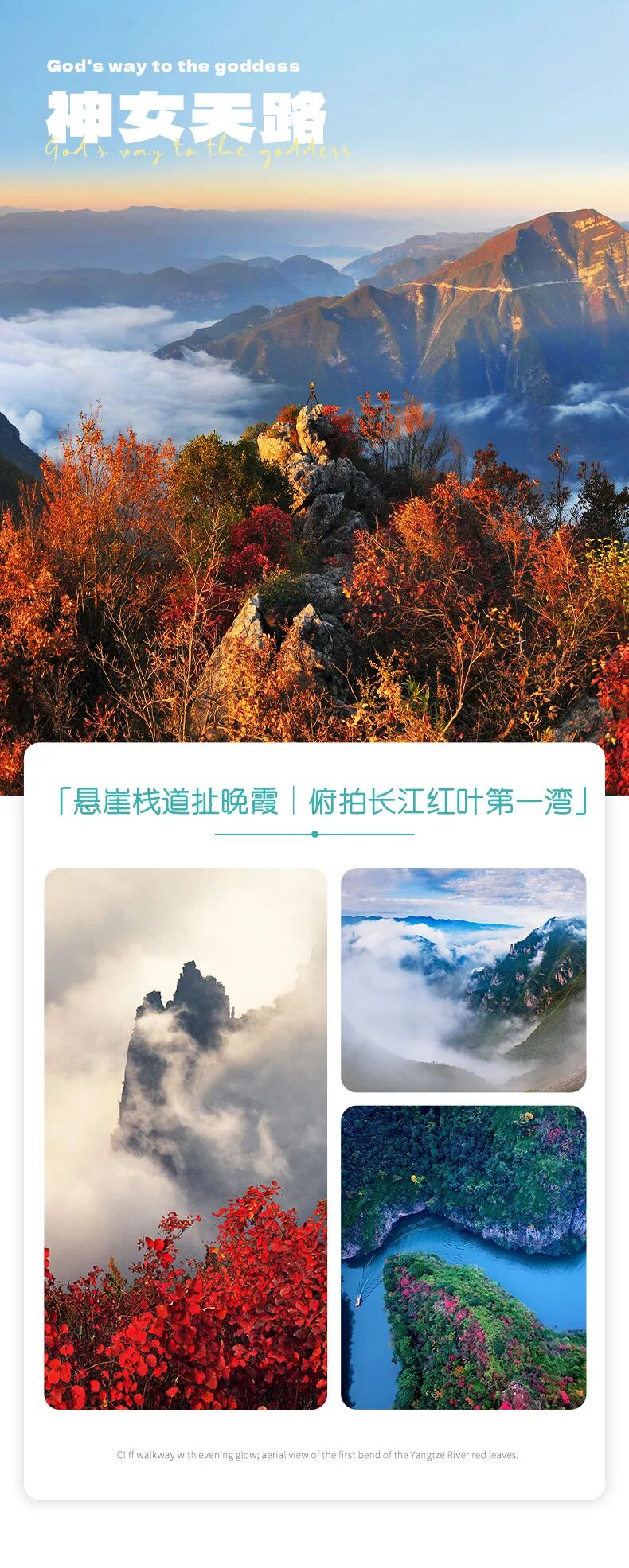 我们将乘车前往巫山神女天路,一路乘坐景交车穿越巫峡,欣赏“曾经沧海难为水,除却巫山不是云”的壮观景象,一路红叶相伴,美不胜收,这里也被驴友评为长江上最美的三峡画廊。