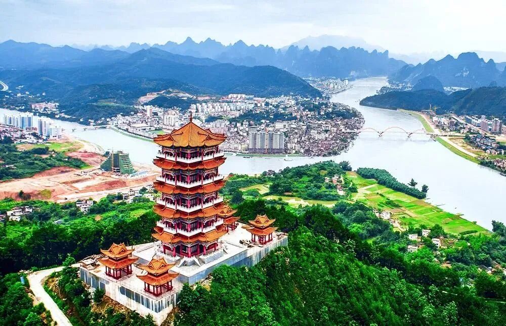 朝看日出云海,晚看孤鹜落霞,想要一窥平乐县城的全貌,唯有登上位于漓江、荔江、茶江汇合处的金子岭,踏上金子岭的金字阁,揽胜平乐胜景,俯瞰三江秀色。