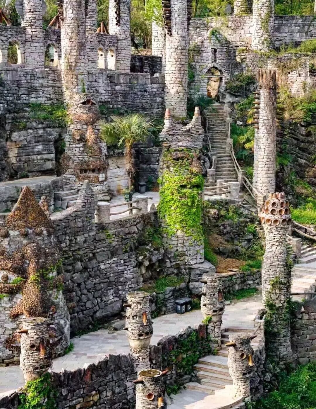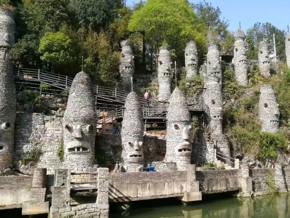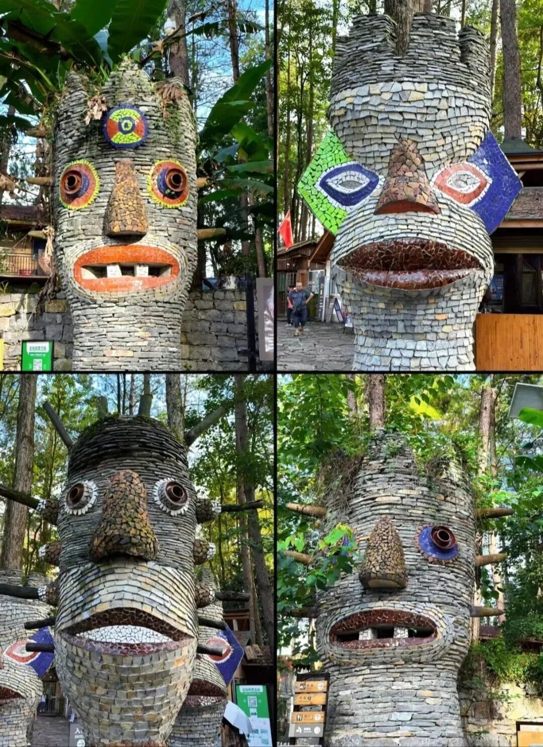 巨大的石头雕像突兀地耸立在峡谷之中,