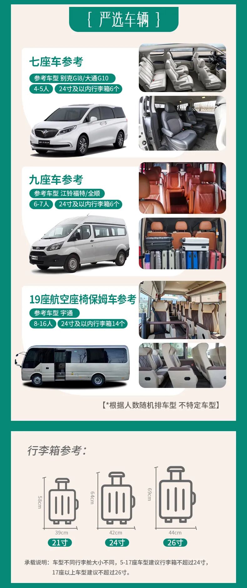 8-16人安排 19座2+1航空座保姆车(单独领队)