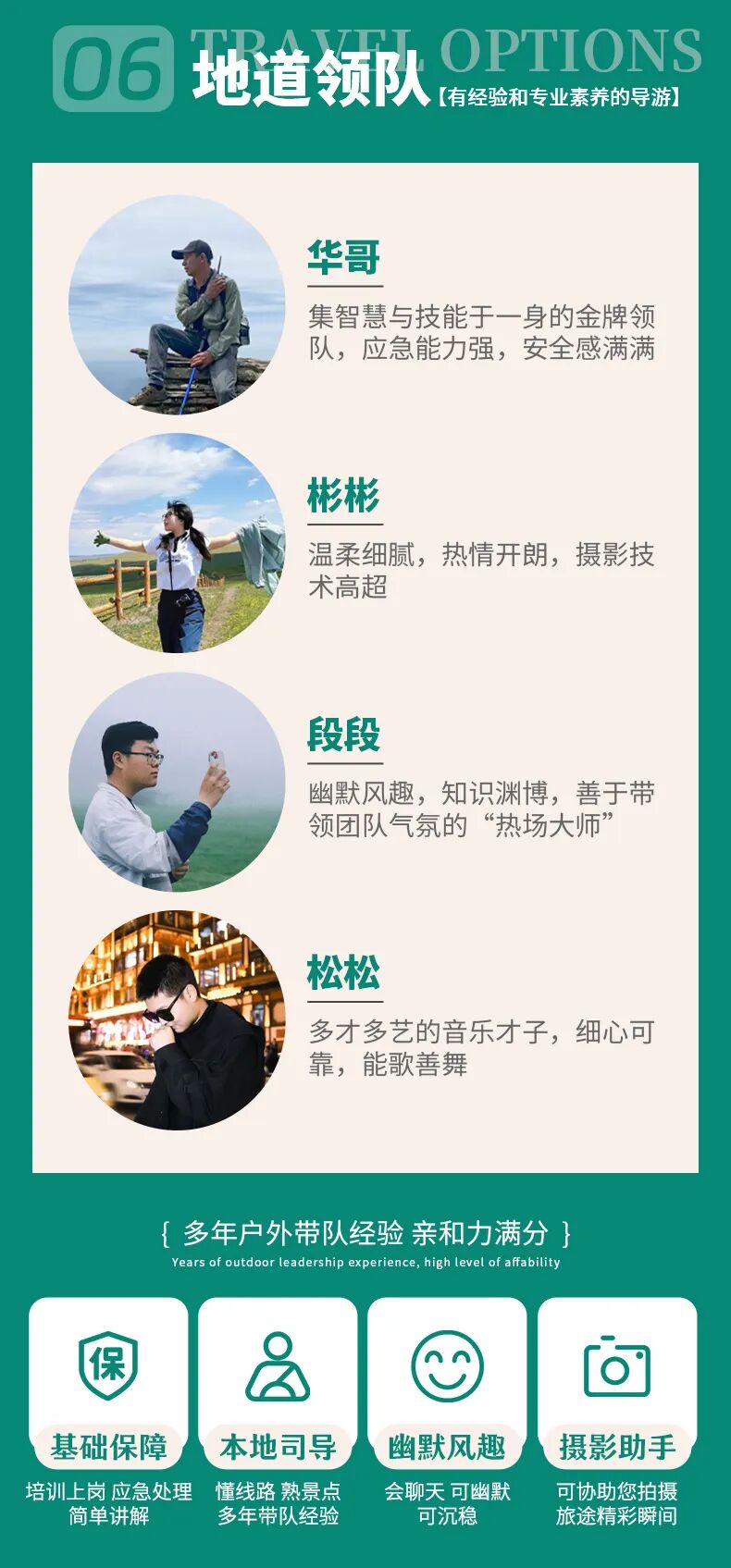 3.大家有不同的出游习惯,但团队活动需听从领队安排,遇到突发情况请领队联系协商解决。
