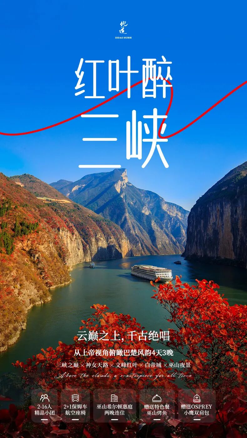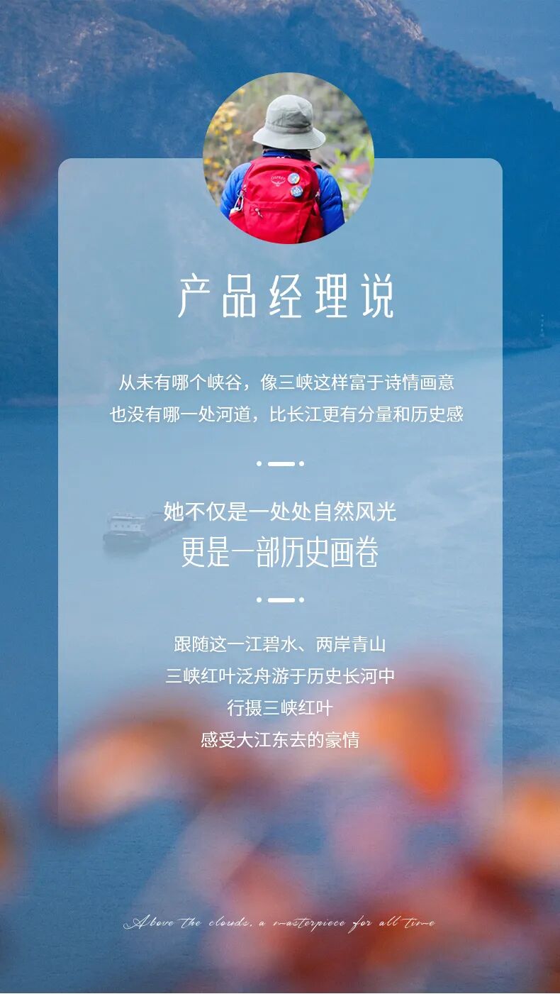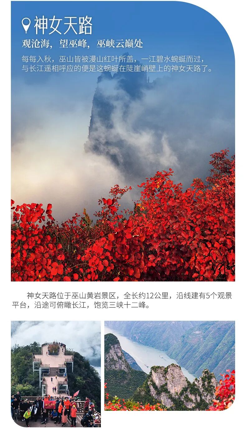 站在三峡之巅俯瞰长江的壮美和那满山的红叶。时间碰巧的话,在三峡之巅还有个人的音律表演。