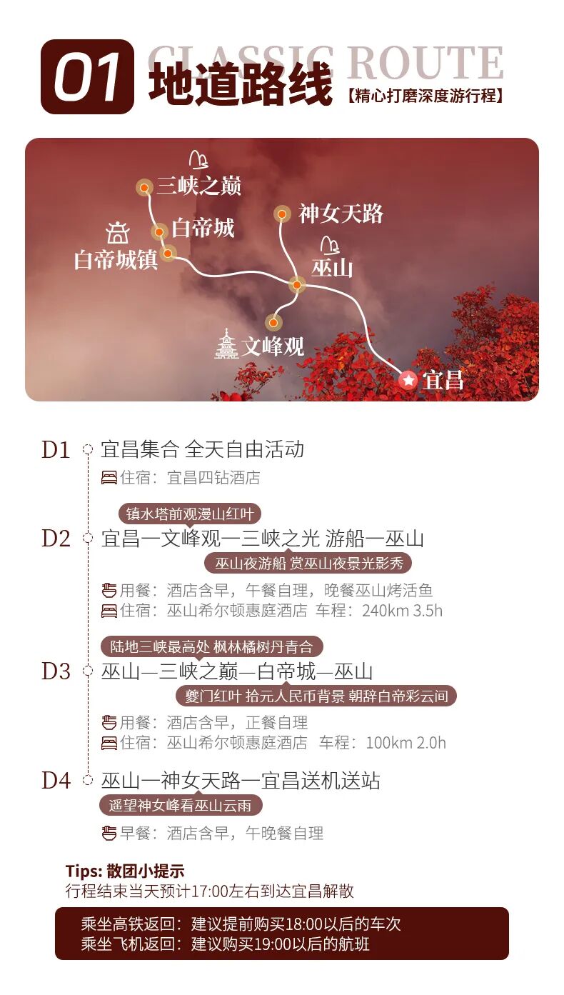 三、本线路属于秋季产品,按照往期预估,红叶季为10月末—12月初,11月中下旬是zui美时间段,但是存在提前或延后的误差,游玩请合理期待实际景色。