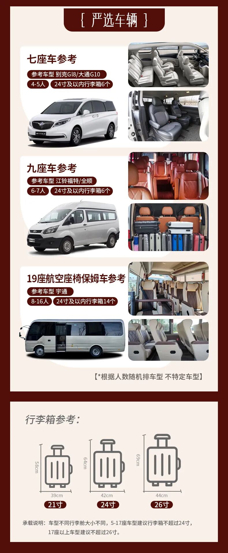 8-16人安排 19座2+1航空座保姆车(独立导游)