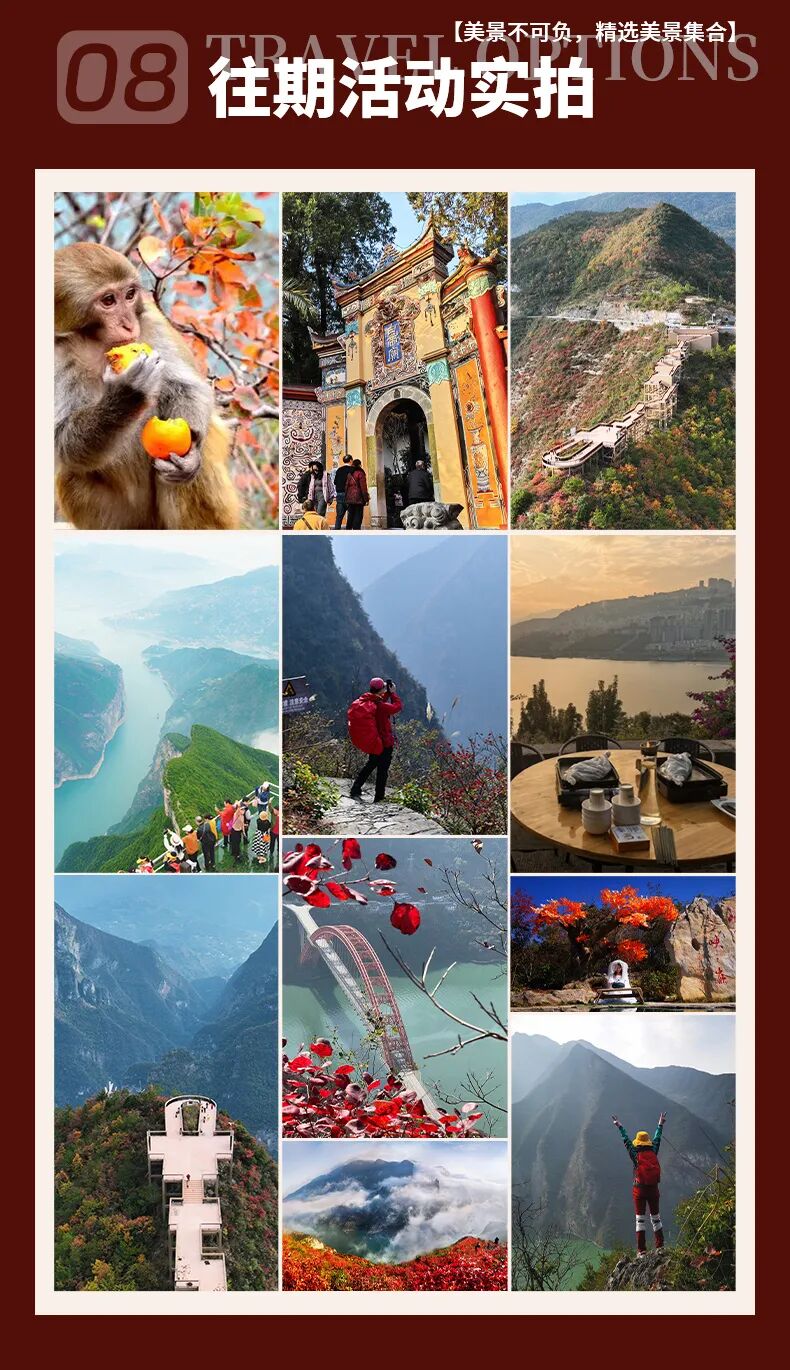以“朝辞白帝彩云间,千里江陵一日还”的诗句而闻名于世的白帝城,位于重庆市奉节县城城东十里的白帝山上。我们将深入山间小路,拍摄瞿塘峡风光,如果你还能找到一张第五版10元人民币,别忘记带上,看看【夔门】过去和现在的变化,三峡大坝蓄水至海拔175米后,瞿塘峡已是高峡平湖,两岸险峰峻石依旧,既有满山红叶似彩霞的绚丽多姿,又有碧水荡漾、烟波浩渺的静美壮阔。