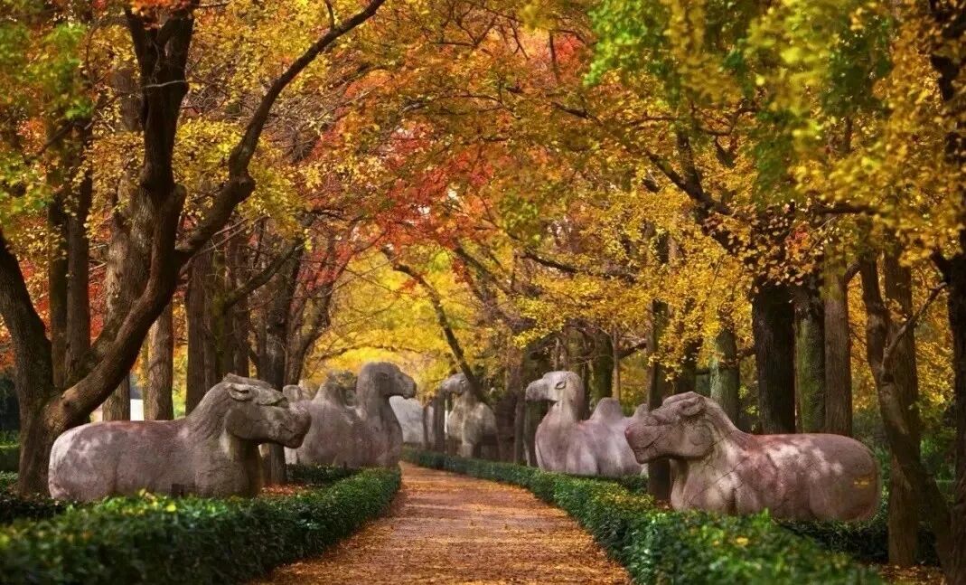 早起早餐后我们乘车出发【明孝陵】,我们常说“秋栖霞”应该分一半的盛名给明孝陵。我们将走进金黄火红的浪漫之路,走进石象路,在茫茫林海中,就如同走进了一条时光隧道,金黄的,火红的,交织出历史的幻像。神道可分为两段,石像路是南段,这一段神道两侧的石像是六种动物,从神功盛碑亭过来,由南往北分别是狮、獬豸、橐驼、象、麒麟、马,每种又各有一对蹲伏,一对直立,共十二对。我们的领队带领寻找私藏的绝美秋色。适时集合,尽量避开来自中山东路的拥堵,大家不妨跟着领队一起乘坐南京地铁(不堵车则乘大巴前往),一起去品南京科巷美食,好吃不贵,便宜实惠,宝藏美食街。饱餐后,继续乘车前往颐和路。“一条颐和路,半部民国史”。颐和路,拥有200多栋民国建筑,被誉为“民国建筑博物馆”。民国之于南京,是一段浓墨重彩的岁月,顾和路几乎见证了整个民国的风起云涌。我们漫步颐和路,体验这份金陵城独特的浪漫秋色。