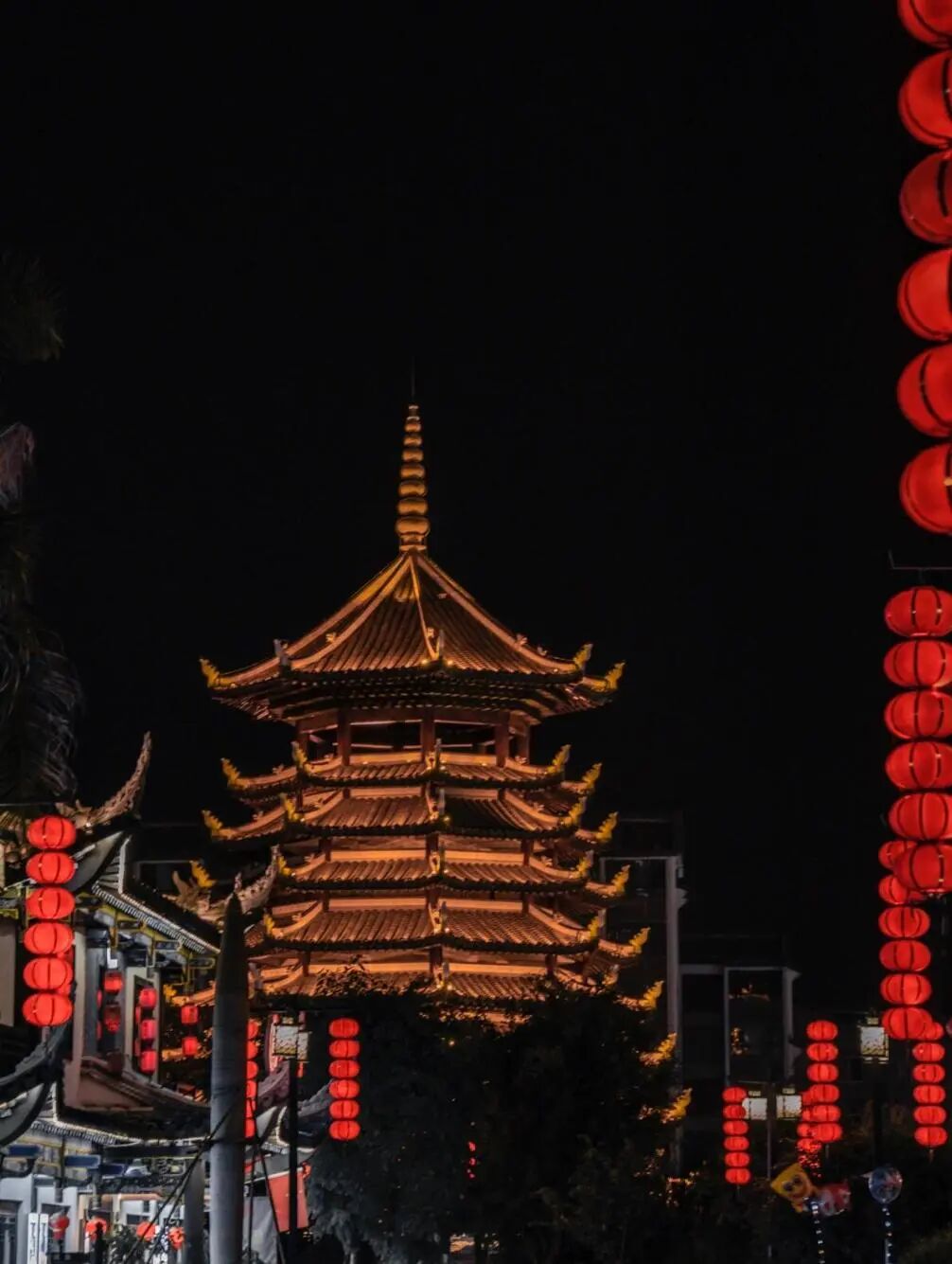 夜幕降临,华灯初上,才是锦绣古镇最美的时候,炫彩灯光将古镇点缀得流光溢彩,色彩斑斓,时光仿佛在光影中错乱了。