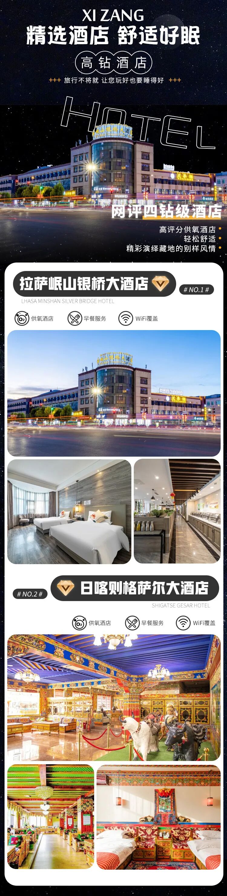 参考酒店:四钻酒店 拉萨岷山银桥大酒店(大昭寺店)或兰欧国际酒店(拉萨市政府西藏大学店)或维也纳国际酒店(拉萨市政府店)