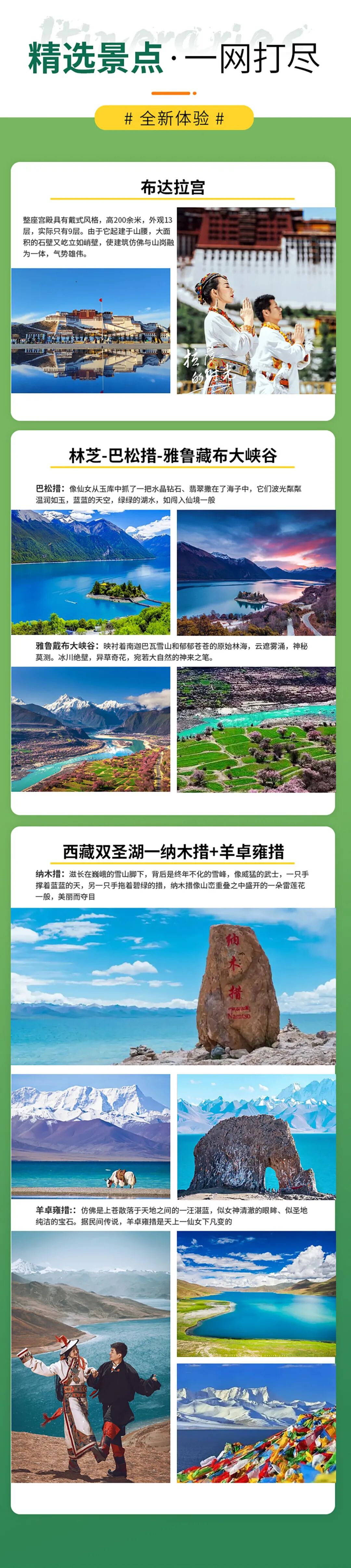 2、本产品全程门票:布达拉宫、大昭寺、纳木措、羊卓雍措、卡若拉冰川;