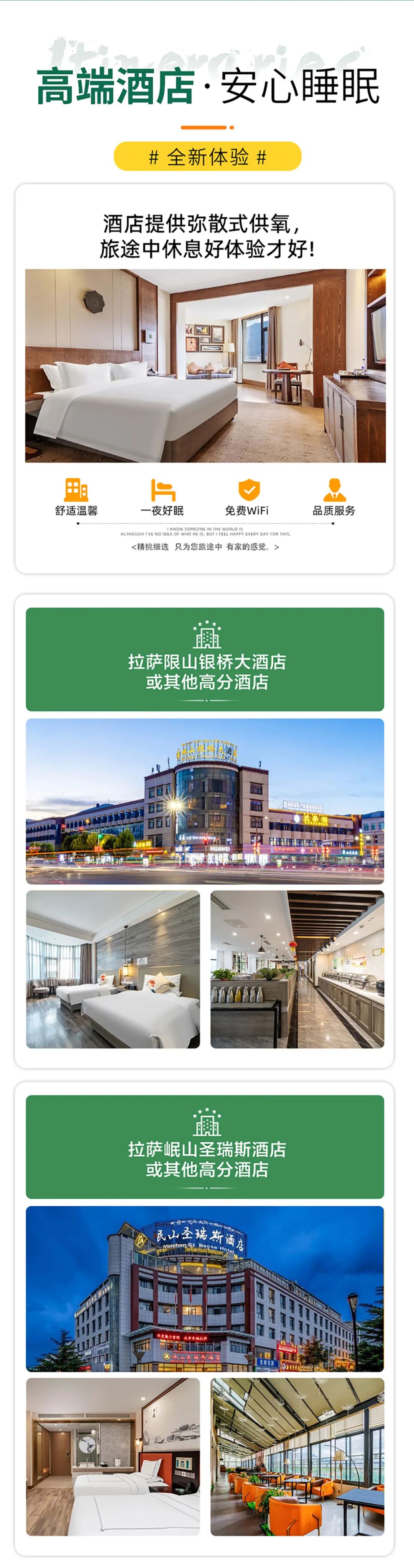参考酒店:四钻酒店 拉萨岷山银桥大酒店(大昭寺店)或兰欧国际酒店(拉萨市政府西藏大学店)或维也纳国际酒店(拉萨市政府店)