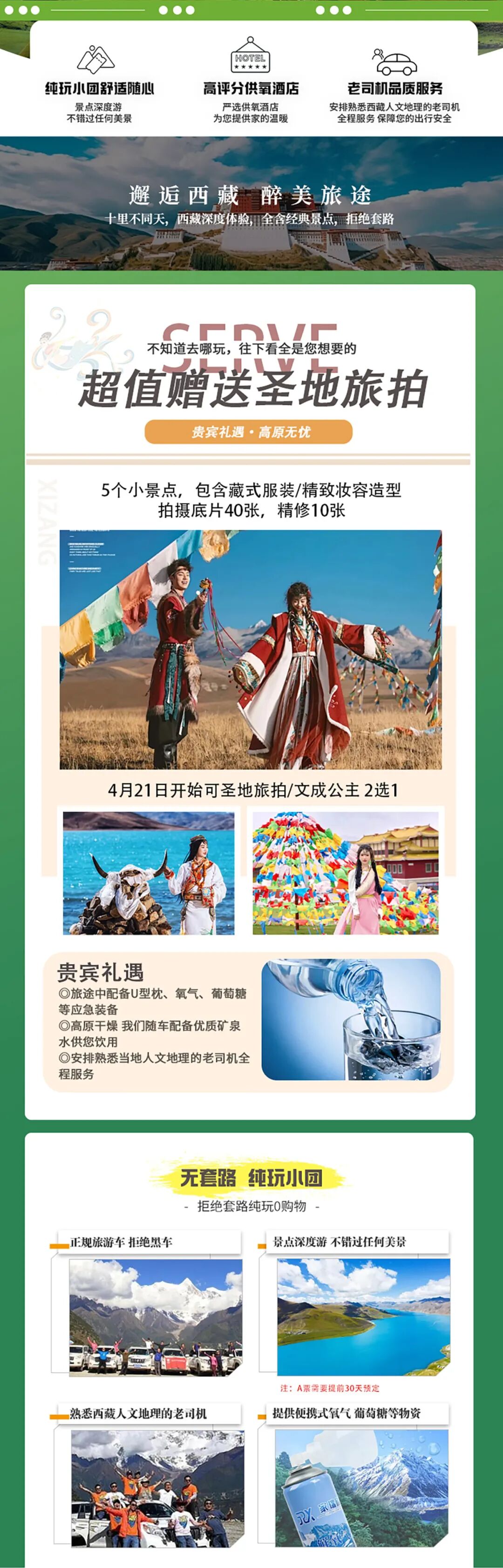 1、每年4月21日-10月31日,赠送380元《文成公主》大型实景剧,其余出发团期不安排;
