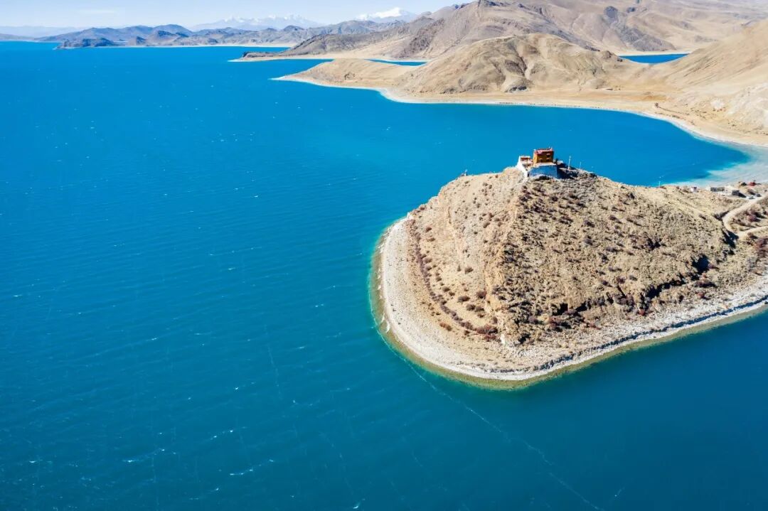 羊卓雍措藏语意为“碧玉湖”,位于西藏山南地区浪卡子县和贡嘎县之间,湖水面积638平方公里,海拔4441米,湖岸线长250公里。羊湖湖汊极多,形似珊瑚枝,湖水明蓝映天,景色丰富秀美,集雪山、冰川、岛屿、牧场、农庄和温泉等景色为一体。