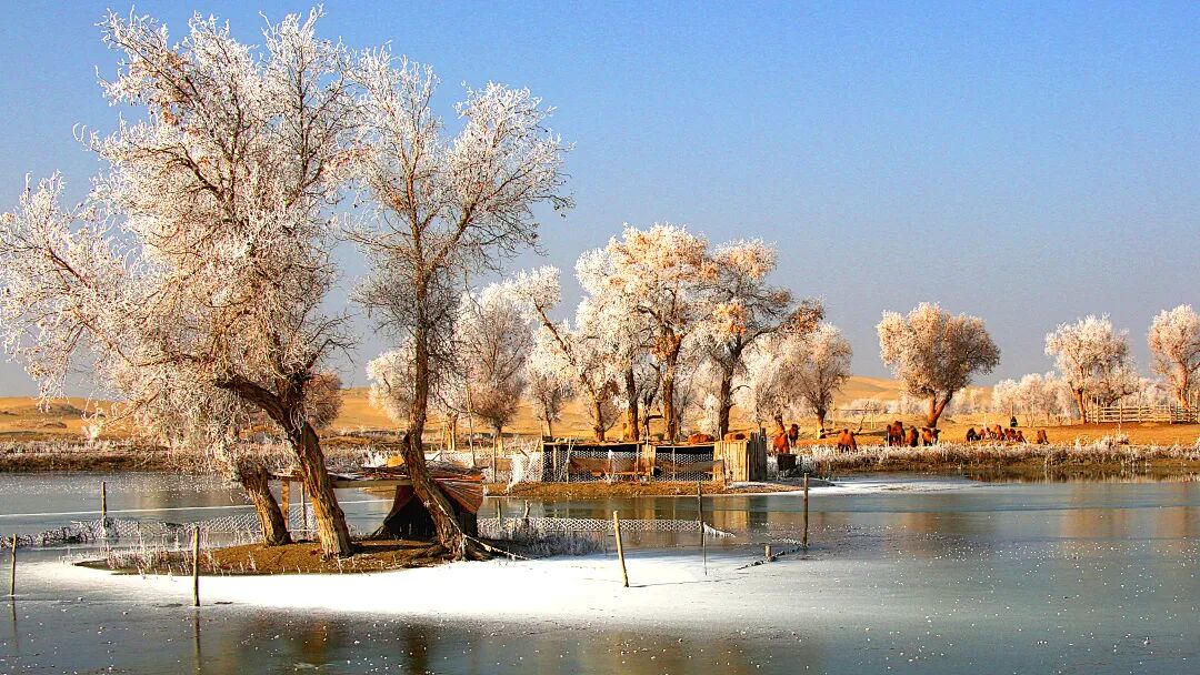 今日南疆8日之旅正式开启!早起乘车出发,沿着乌尉高速前往罗布人村寨景区,冬天的罗布人村寨是一场静谧而壮丽的自然景观,沿路看雾凇,看沙漠雪景。冬季的沙漠不再是夏日的炎热难耐,脚踩上去既不会深陷,也不再是松软的感觉,取而代之的是硬实的触感。罗布人村寨曾是丝绸之路上的重要驿站,漫步其中,仿佛能听到历史的回声。走进那些残垣断壁,想象着当年商旅络绎不绝的繁华景象。后前往酒店入住。