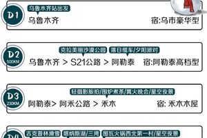 1.大交通:各地往返乌鲁木齐的交通费用。