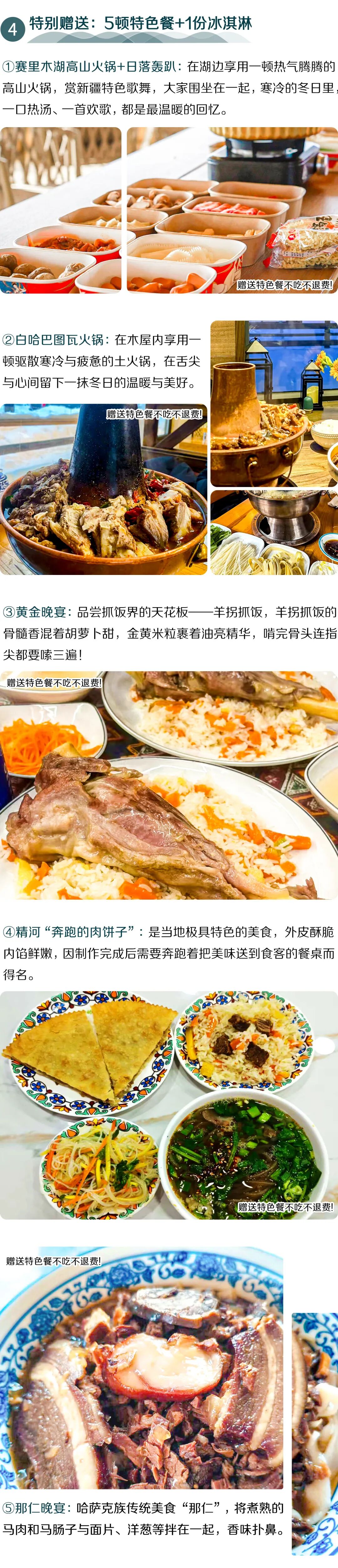 5.哈萨克那仁风味晚宴为赠送项目,不吃不退。