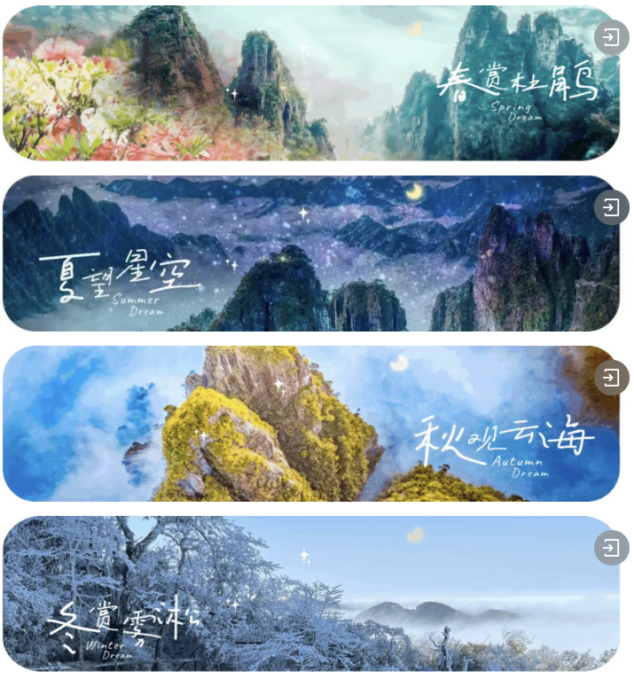 峰险、水秀、松奇、林幽、泉清、石怪、云幻、雾凇