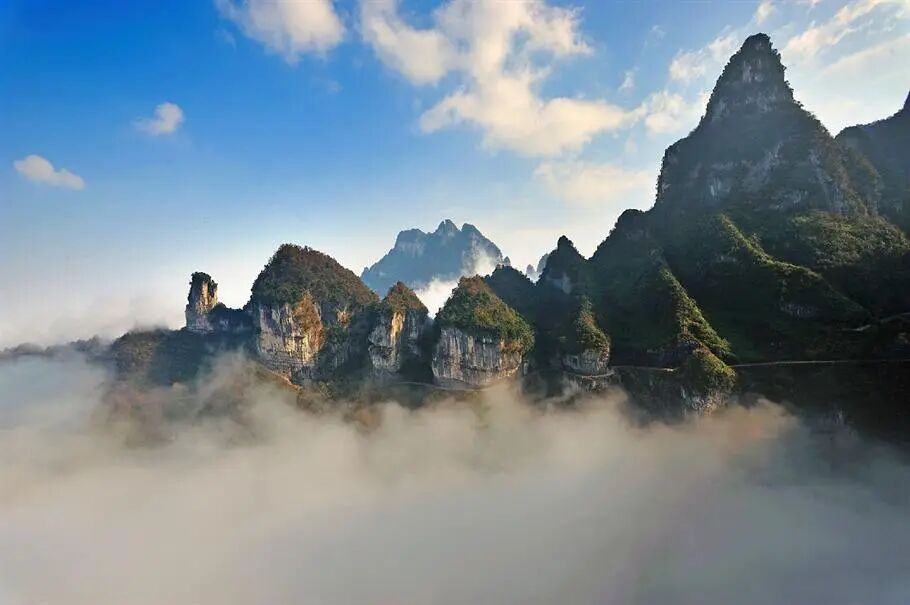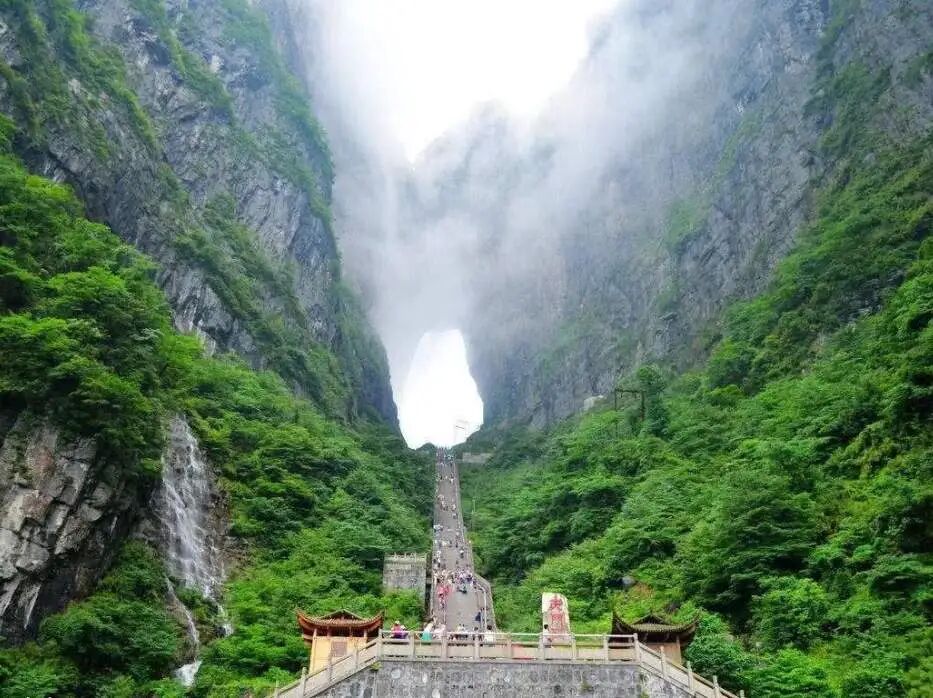后前往游览【天门山国家森林公园】(门票已含,已含上下山交通,游览时间约4小时)登张家界之巅,俯瞰张家界全景,观赏奇妙美丽的盆景花园。天门山文化底蕴深厚,有“武陵之魂”之称,更有湘西第一神山的美誉,它兼峰、石、泉、溪、云、林于一体,集雄、奇、秀、险、幽于一身,被誉为空中原始花园。我们乘坐天门山索道,前往游览天门山:观天门洞、 99道弯公路奇观(通天大道)、李娜别墅、鬼谷栈道、鬼谷兵盘、云梦仙顶等著名景点。还有惊险刺激的