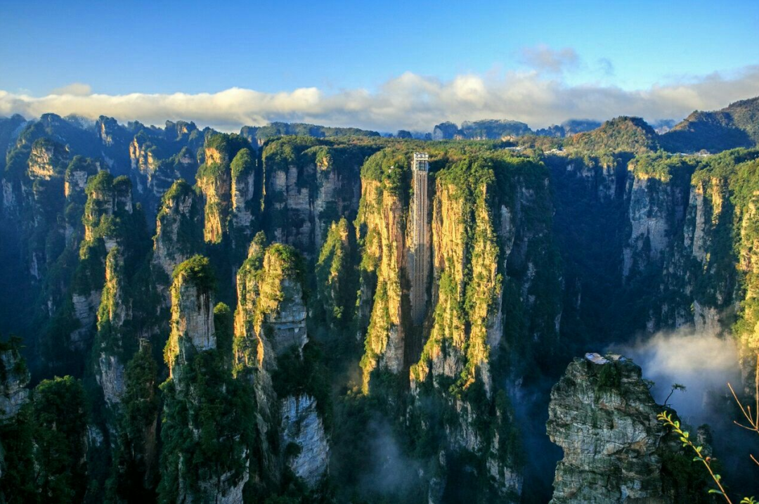早餐后,乘坐巴士前往张家界市区(车程较远,可备少量零食),餐后游览【张家界国家森林公园】(含森林公园首道大门票 , 含上行天梯72元/人),观绝美峰墙,览天然长城。知名景观有一步登天、空中走廊、龙泉飞瀑、绝壁藤王、白鹤聚会等二百余处。最高峰“一步登天”海拨1130米。杨家界境内沟壑纵横,溪水长清,植被茂密,森林覆盖率达95%。杨家界东接张家界,属石英砂岩峰林峡谷地貌。前往世界自然遗产的核心【袁家界风景区】(游览时间约1.5小时)袁家界位于杉刀沟北麓,是以石英岩为主构成的一座巨大而较平缓的山岳,既有石丛小涧、银瀑高泻,又有竹林繁茂、苍松垂壁。由于水丰林密,空气极为清新。是张家界公园又一处风景集中地。主要游览:【天下第一桥】【迷魂台】【哈利路亚山】(电影《阿凡达》中“悬浮山”的取景山)【后花园】等
