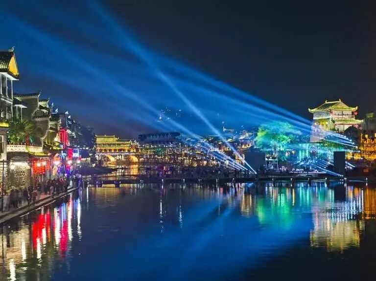 结束后BUS赴凤凰古城(车程约3小时),晚上夜游凤凰古城,于沱江边放祈福灯,也可于沱江边小酒吧落座,欣赏沱江两岸醉人【凤凰沱江夜景】沱江是血色湘西的黄金水道,千年历史迎来送往;是沈从文走出湘西的必经之路,陪伴先生畅游文学的海洋;是黄永玉泼墨咏叹的梦里水乡,炫丽的画笔时时不忘沾染沱江;是凤凰古城最浪漫最唯美最迷人的十里画廊……