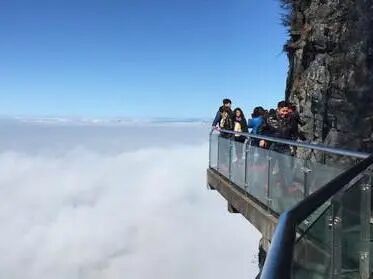 【盘龙崖玻璃栈道】玻璃栈道是张家界天门山景区继悬于峭壁之上的鬼谷栈道、凭空伸出的玻璃眺望台、横跨峡谷的木质吊桥后打造的又一试胆力作。可与举世闻名的美国大峡谷玻璃走廊“天空之路”媲美,因而有了东方“天空之路”的美誉。