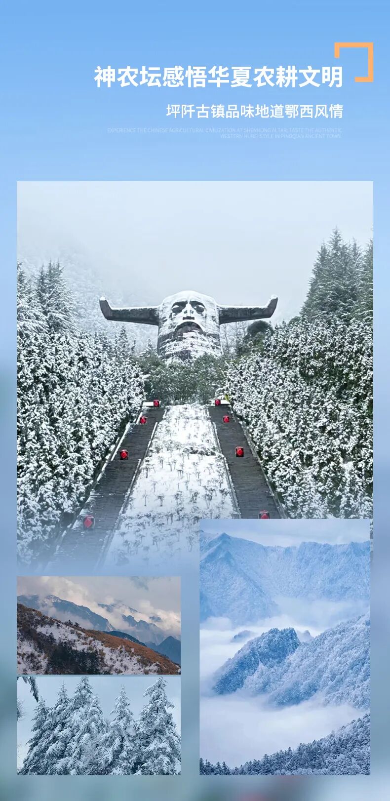 木鱼镇—神农架滑雪场滑雪—金猴岭(冰瀑)—神农谷-神农顶(雪景)—坪阡古镇;