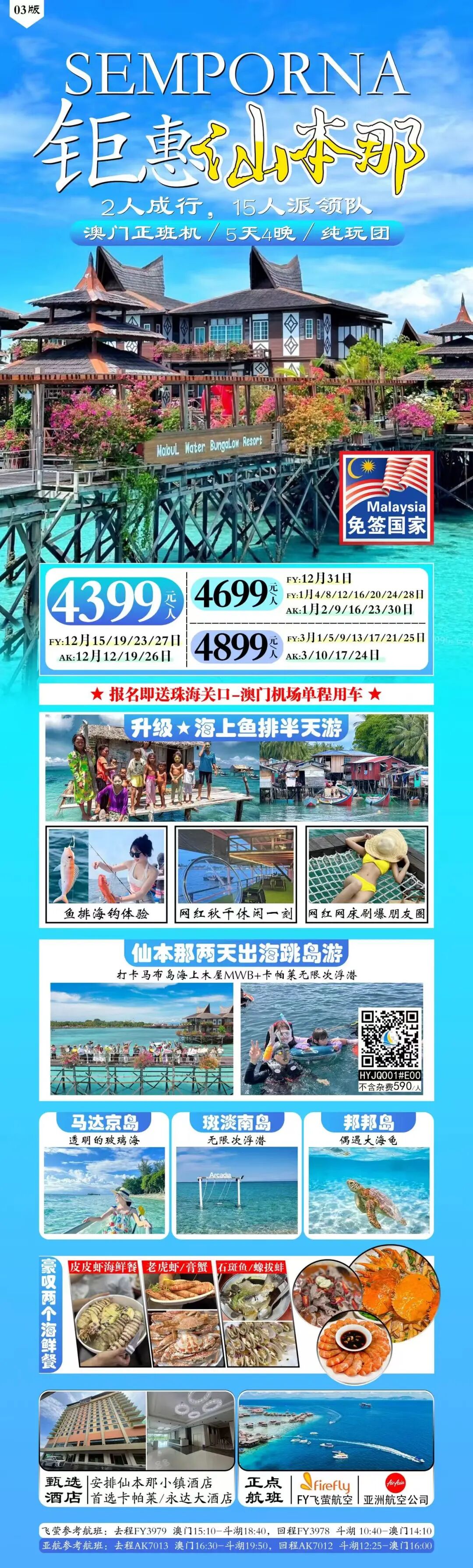 参考航班:FY3978 斗湖 10:40-澳门 14:10//AK7012 斗湖 12:25-澳门 16:00