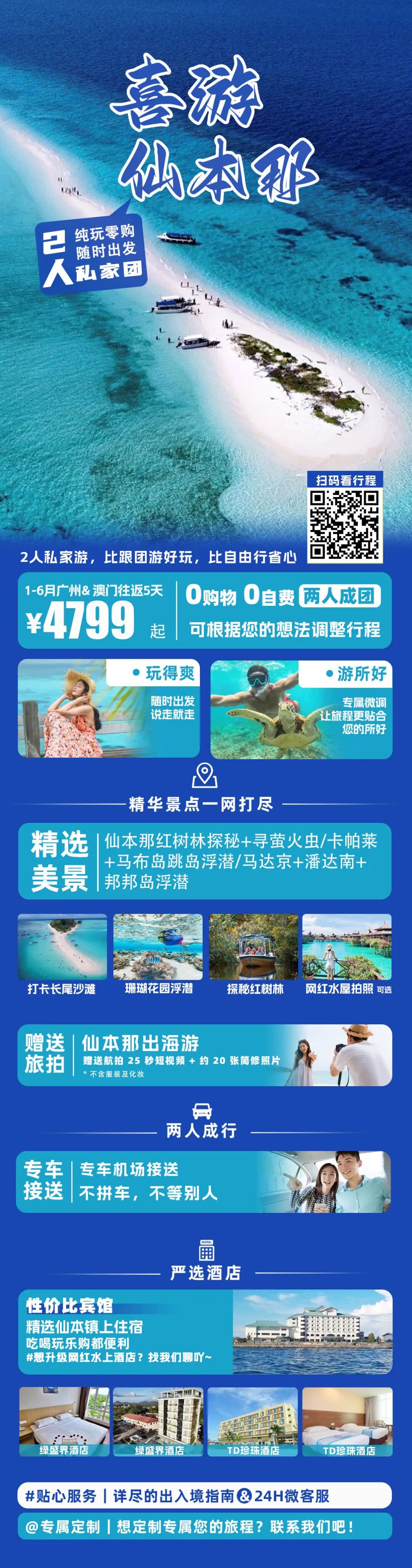 要问海水哪家好?不说都知道马代是天花板,但,住宿的价格自然也是王者的消费,这一晚眼睛一睁一闭,一个月工资就没了,荷包君真是受不了……好在,地球上还有一个“马代平替”——仙本那。别看仙本那这座小镇很十八线,酒店也比不过马代,但人家的海水颜值还真不输马代一点半点。天气好的时候,不加滤镜这里随拍成画,发朋友圈不说都以为你去了真的马代~而蕞关键的是,来这里耍的费用能比马代省一大半,打工人轻轻松松就可以搞定玻璃海和拖尾沙滩~~ so,选择海岛游,仙本那值得你的PICK!!