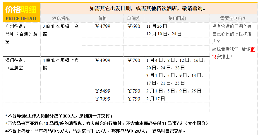 全程独立出发,无需担心是否成团。而且你想要其他出发日期也可另询,总之,你的旅程你作主,“随心所欲”玩得爽!