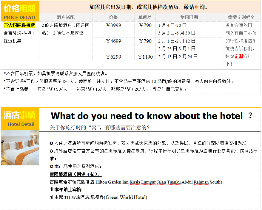 全程独立出发,无需担心是否成团。而且你想要其他出发日期也可另询,总之,你的旅程你作主,“随心所欲”玩得爽!