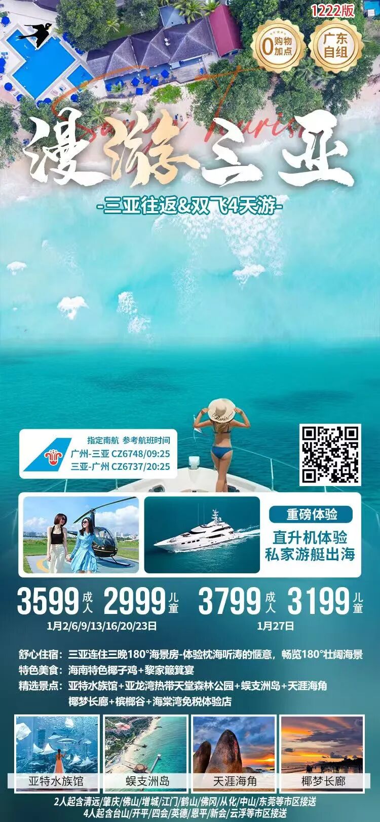 ★出行航班:指定南航、超靓航班:去程参考CZ6748/09:25,回程参考CZ6737/20:25