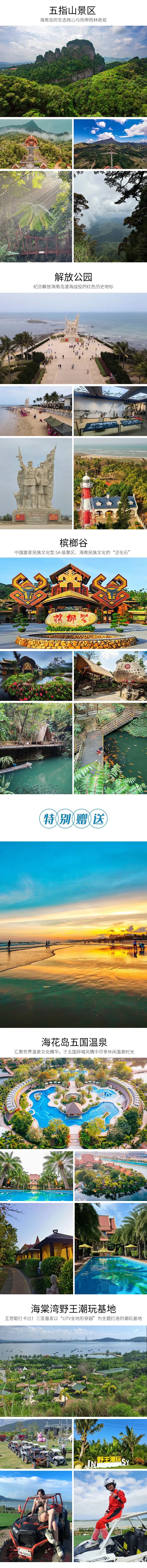 早餐后,前往游览【儋阳楼】(含电瓶车)儋阳楼乃双子结构,阴阳合璧。其以马鞍岭奠基,汇笼周边氤氲之地气,层层垒砌,骑跨而上,以通九重,成凌空高踏之势,无有抵挡。近则阡陌纵横,云月徘徊于湖底;远则汪洋恣肆,波浪喧腾于海外。登此楼兮,如耸立巨人之肩,既可仰望苍穹,拨云见日,抚摩青天,于纯洌罡风之中,吞吐浩然大气;亦可俯瞰尘氛之浮华,开解肺腑之缠结,放飞心中踊跃之鸽雀;还可追怀古往,憧憬未来,与天地精神共驰骋。.【五指山景区】(观山1.5小时,若进山后需爬山,需要约5-6小时,也必须请向导,但每位向导只限带10人,所以不建议爬山)犹如镶嵌在五指山区绿涛上的一块翡翠,街道两旁菠萝蜜、椰子树和凤凰树红绿相映,美丽的南圣河像条银白色的飘带绕着山城而过。此地冬暖夏凉,清晨凉风习习,雾锁山城;午间云开雾散,阳光普照;午后乌云聚合,大雨倾盆,往往出现“东边日出西边雨”的奇异景观,飘带似的彩虹点缀天空。五指山还是黎苗传统文化歌舞及工艺品创作和表演的主要基地,民族风情原始、古朴、浓郁,别具特色的宾馆、黎村苗寨而吸引了大量游人,是海南省每年“三月三”黎苗民族传统节日庆典的主要场所。