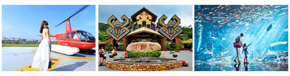 早餐后,前往体验最时尚、最流行、高逼格网红打卡项目——赠送项目【豪华直升机低空飞行一公里】。继续前往【槟榔谷】(游览时间约120分钟),海南省游客满意十佳景区及十大最佳特色魅力旅游风景区之一。这里有全岛树岭最老的槟榔群体——百年槟榔林,同时也是海南岛槟榔的发源地。园中有少数民族表演及各种民族风味小吃,在这里可体验黎族文化中的非遗项目,看黎锦,听八音,黎族纹面等。也可参观黎族百年谷仓和船型屋,感受黎族起居。前往畅游【亚特兰蒂斯水族馆】(停留时间约60分钟)在水族馆,您可以与86000多只,超过280种海洋动物近距离地接触,包括来自极地的白鲸,各种鲨鱼、水虎鱼、马里鳗、幽灵鳐和巨滑舌鱼及其他奇特的海洋生物。亚特兰蒂斯的中心地带,那里是一个蓄水量13500吨的海洋生物栖息地-这也常常令游客稀奇不已。