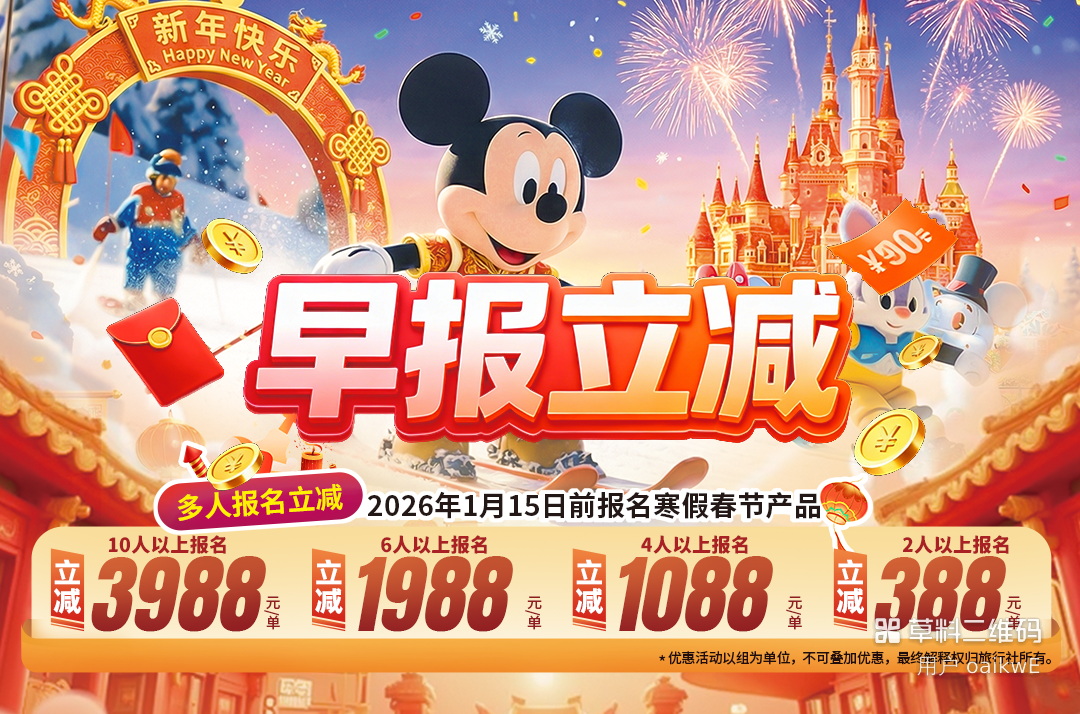 ②交通自理: 购买早享卡的客人,如需提前入园,请自费自行前往迪士尼乐园(可选择出租车、网约车或地铁等交通方式)。