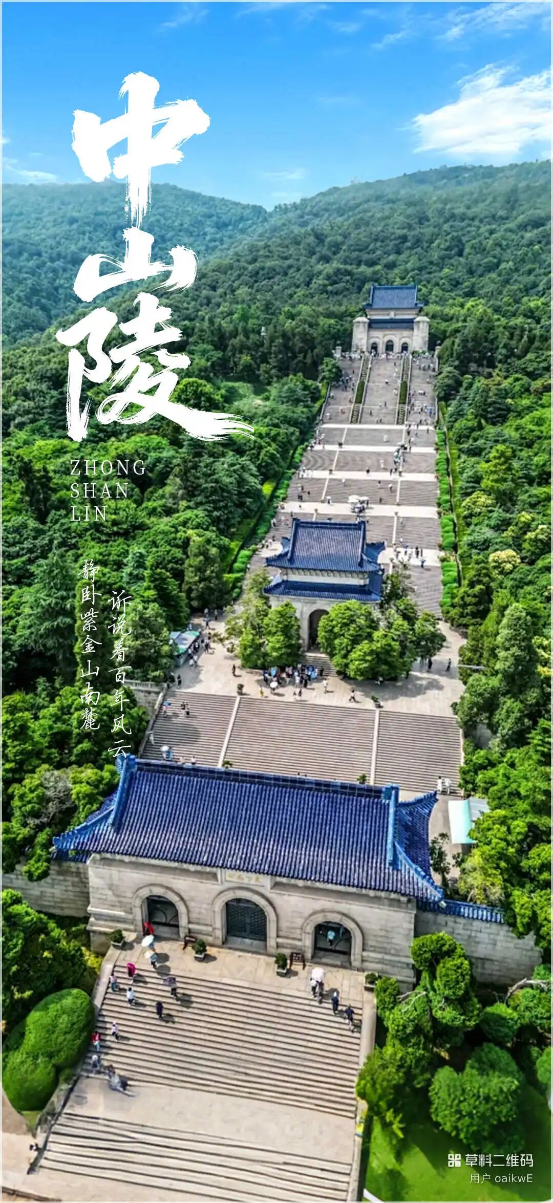 游览:【气势磅礴•中山陵】(游览时间不少于1小时,免费参观,周一陵门以上关闭,仅能参观陵门以下景点,敬请谅解)位于南京东郊的钟山风景区内,东毗灵谷寺,西邻明孝陵。整个建筑群依山势而建,包括博爱坊、墓道、陵门、碑亭、祭堂和墓室等,由南往北排列在一条中轴线上,体现了中国传统建筑的风格,墓地全局呈“警钟”形图案,被誉为“中国近代建筑史上的第一陵”;