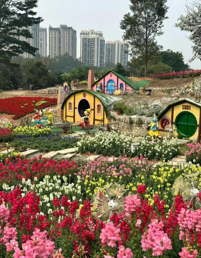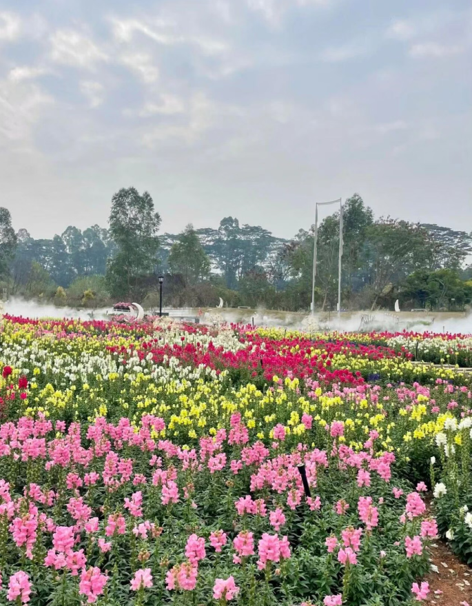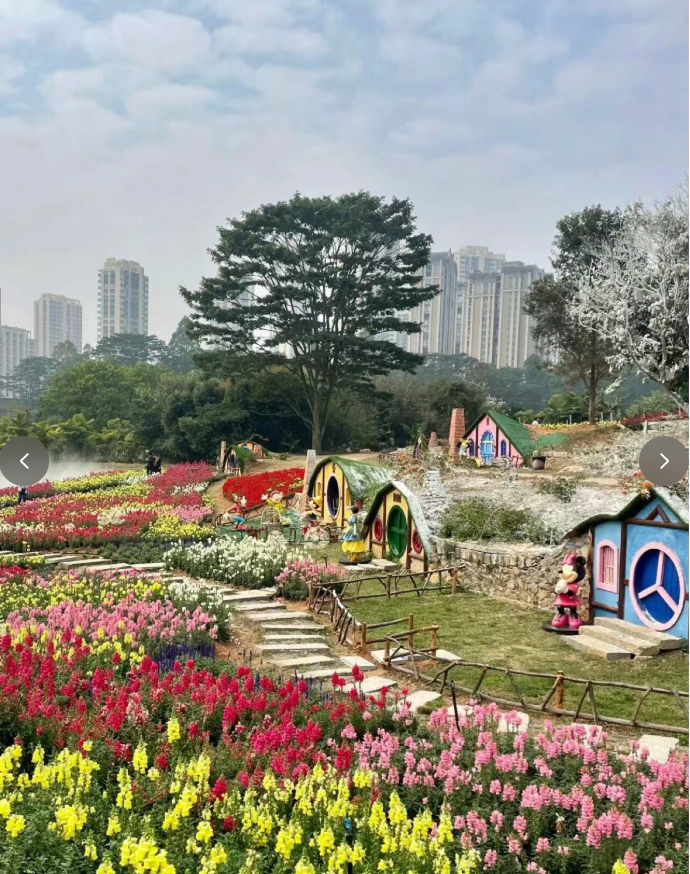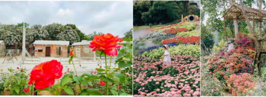 后前往【香遇百花园】,景区定位于打造一个沉浸式、全感官的花境式花艺园,一个陪同亲子成长的森林探索乐园,我们希望向游客提供一种悠闲自在的慢生活度假方式。花卉景观有广东最大的鲜花孔雀图、最美的油画花海、800 平方的鲜花长廊、约 80 亩的花境式浪漫花海、东北雪乡、萌鸭牧场、网红拍摄场景、森系无动力乐园、森林营地、竹林营地、悠闲茶歇、5000 平大草坪等内容,景区四季百花盛开(花期仅供参考,受天气影响,不受人为控制,请以实物为准!):绣球花(春节到5 月 15 号)、玫瑰花(常年有)、麦杆菊(春节到五一)、金鱼草(元旦到五一)、毛地黄(春节至三月底)、鲁冰花(春节至 3 月底)、桑蓓斯(现场至 6 月)、大丽花(春节至五一)、大花飞燕草(春节至 3 月底)、薰衣草(元旦至五一)、蓝花藤(全年)、矮牵牛(春节至五一)、树牵牛(全年)、桃花(1月底至 2 月底)、菊花(12 月20 号至 3 月)、鸟尾花(全年)、向日葵(三月至 12 月)、醉蝶花(三月至六月)、虞美人(春节至三月底)