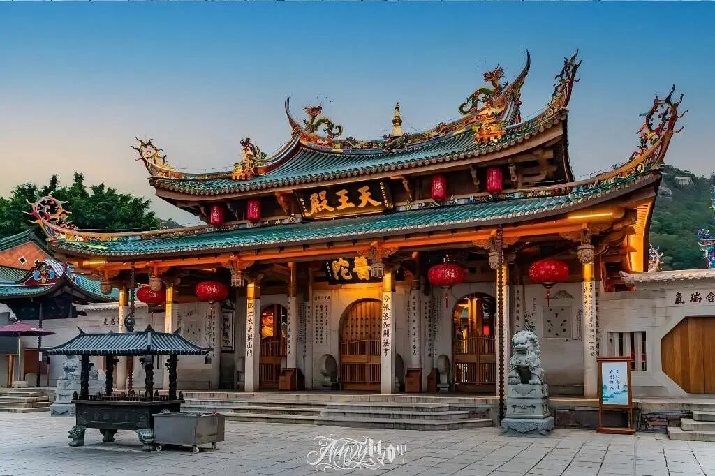 1:【南普陀寺】南普陀寺位于福建省厦门市东南五老峰下,毗邻厦门大学,面临碧澄海港,是闽南佛教胜地之一。清朝康熙年间得到重建,并因其供奉观世音菩萨,与浙江普陀山观音道场类似,又在普陀山以南而得名“南普陀寺”
